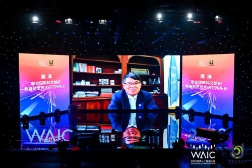 联合国教科文组织教育信息技术研究所所长展涛以远程视频形式参加本次会议,他表示,人工智能和数字转型将引领教育变革,而实现这一变革,需要多方的共同努力和密切合作,包括教育、技术、政治、管理等部门,也包括世界各国的共同努力。