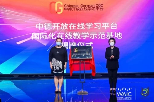 褚劲风和张瑾为中德开放在线学习平台国际化在线教学示范基地揭牌