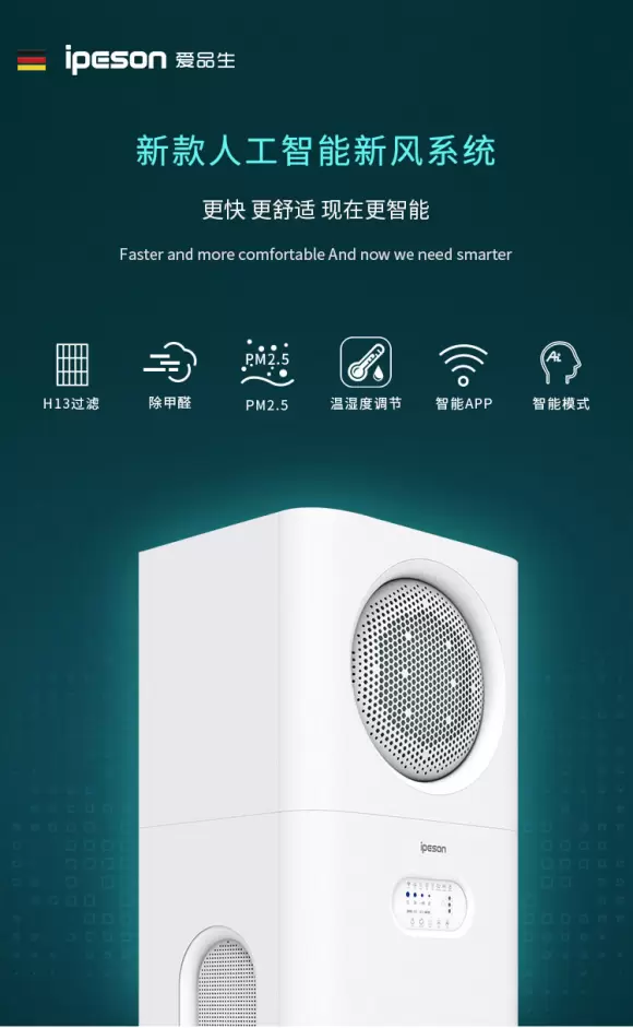 作为致力于环保节能的德国爱品生(iPeson),根据中国室内空气污染的现状,设计了一套全新的智能新风——Korlibe人工智能技术,以应对人们对家居环境更高的需求。