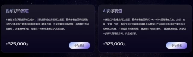 大赛以5G、AI、大数据、XR等技术赋能开发者,开放75万现金奖励,同时面向不同类型的开发团队提供强有力的扶持资源:个人优秀参赛者可加入“星空计划”,获得产业链资源赋能,助力创意加速实现;企业开发团队可与沃音乐建立合作伙伴关系,共同研发重点产品,联合推广、共同获益。