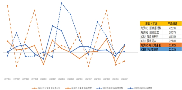 (国际站服装上下游出口增速与国内海关同品类出口增速对比)