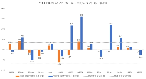 (国际站服装行业下游(中间品-成品)环比增速差)