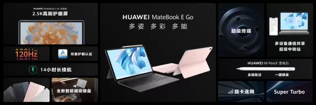 2022年9月6日,在华为Mate50系列及全场景新品秋季发布会上,华为正式发布新一代二合一笔记本——华为MateBook E Go。产品继承了华为在笔记本和平板电脑领域的深厚积累,以创新的产品形态、时尚多彩的产品外观、多设备互联体验以及长续航体验,革新二合一笔记本的体验,让二合一笔记本拥有可以成为移动生产力设备的能力。 4199元起的华为MateBook E Go,以入门级价格带来旗舰级品质,出色的实力或将推动二合一笔记本的普及。