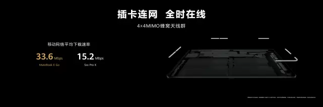 华为MateBook E Go支持LTE移动网络(仅标准版支持)和华为独创的移动通信共享功能,一举解决了传统移动生产力设备对与Wi-Fi网络的依赖。现在用户随时随地打开笔记本就可以实现网络连接,别管是在户外、车内还是其他无Wi-Fi环境,都可以随时随相联。
