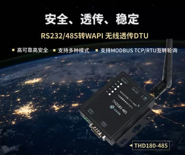 9月6日,芯语慧联信息科技有限公司联合西电捷通公司、北京联盛德微电子有限责任公司、北京三凯威科技有限公司,发布了首款行业专用高安全WAPI DTU(数据传输单元)设备——THD180-485,该设备具备RS232/RS485工业总线转WAPI无线网络数据收发的能力,即插即用,无需对现网设备做任何修改、无需传统的串口线缆布线即可实现数据的无线收发,可以帮助行业用户轻松解决RS232/RS485设备使用WAPI无线技术进行数据安全传输的需求,保障行业设备网络通信的安全性合规性。