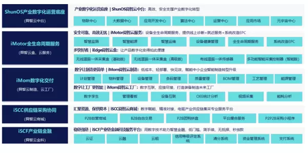 构建“ 1+1+N” 产品服务体系:打造产业数字化运营底座,建设电机产业大脑,面向电驱全产业链提供 N 个场景的数字化运营服务,包括iMotor设备全生命周期服务、iMom智能制造/未来工厂、iSCC供应链集采服务、iSCF产业链金融科技服务、iStore产业生态赋能等场景的数字化解决方案与运营服务。