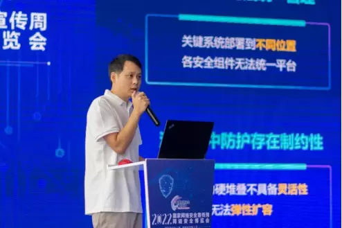 会上,天翼云科技有限公司安全高级产品经理杜茜介绍了云原生安全产品红盾系列所包含的Web应用防火墙(边缘云版)、DDoS高防(边缘云版)、网站安全监测、企业安全访问、天翼云数据安全管理平台五款核心产品。