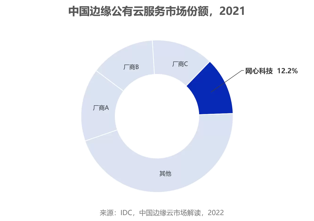日前,国际权威分析机构IDC正式发布了《中国边缘云市场解读,2022》(以下简称《报告》),《报告》显示,2021年网心科技(OneThing)在中国边缘公有云服务市场占有率达到12.2%,位居第一梯队;这也是网心科技首次进入全球主流分析机构的边缘云市场报告,从侧面反映了市场对于网心科技边缘云产品和服务能力的广泛认可。