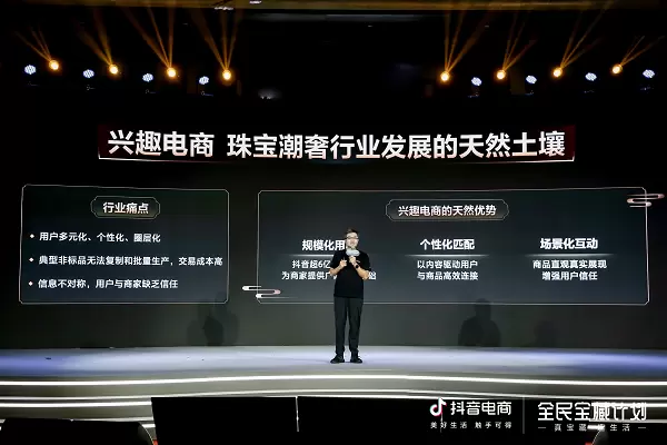 针对宝藏计划的发布,抖音电商珠宝潮奢行业负责人一帆着重对产品升级进行了讲解:“产品意味着商家在平台上做生意是否足够便捷高效,所以抖音电商根据珠宝潮奢行业商家经营全链路拆解并给出最优解法——推出珍宝引擎产品系列。”从供给补足、交易优化、支付提效、体验提升、再销售等多个方面扶持商家,进而基于不同交易环节提高经营效率。