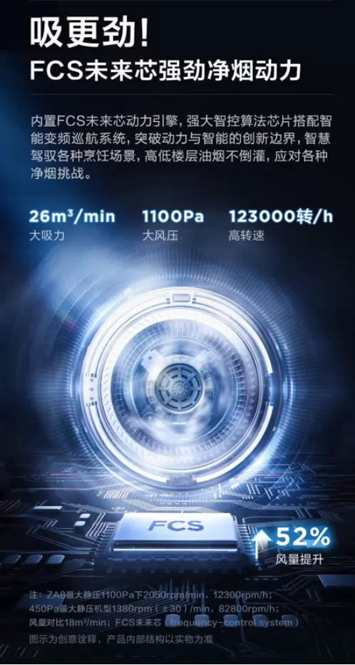 此外,美的无烟感烟机ZA8还内置FCS未来芯动力引擎,强大智控算法芯片搭配智能变频巡航系统,突破动力与智能的创新,带来26m³/min强劲大吸力和1100Pa大风压,能有效防止烹饪高峰期,高低楼层油烟倒灌,让用户轻松驾驭各种烹饪场景。在多重净烟技术加持下,使得用户在烹饪过程中,呼吸区域PM2.5含量低40ug/m³,达权威机构认证一级净烟标准,让用户真正感受无烟感般的健康厨房新体验。