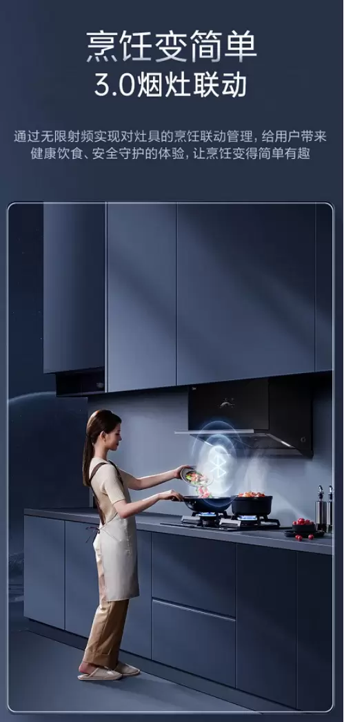 美的无烟感烟机ZA8通过无线射频技术手段,联动管理灶具。在蒸煮等需要等待固定时长的场景中,设置好烹饪方式所匹配的过程时长,全过程无需看管,过程结束时提醒用户;而烹饪过程中,锅具器皿中温度过高时,同样会提醒用户,避免油温过高引起健康危害等问题。