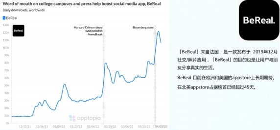 「BeReal」 号称是反 INS 的应用,它的应用非常真实,抓住了我们认为在社交当下产品中间的空白地带:剔除滤镜、点赞等部分功能,限制对照片和视频的编辑,反对完美主义,追求一个真实未加过滤的朋友之间的交流。
