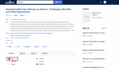 在内容方面,Wiley与百度学术达成题录合作,相关数据正逐步接入百度学术平台,合作资源的原文链接将在文献详情页链接头部位置展现,进一步为科研学者群体提供快速、高效获取国际优质专业内容的有效渠道,扩大学术科研成果的辐射范围。