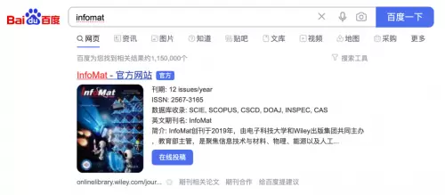 《信息材料(英文)》(InfoMat) ,SCI索引,Wiley与电子科技大学合办