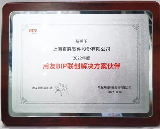 近日,用友在其主办的2022全球商业创新大会上集中展示了用友BIP生态业务全景布局及实践成果,重磅发布30款ISV全新联合解决方案。用友作为全球头部企业云服务与软件提供商,在开放的商业模式下与伙伴携手探索、共创,让伙伴与用友的集成开发更智能高效、合作更紧密融合,并以平台化、生态化的方式满足企业客户利用数智技术对产品和业务、组织管理的创新需求。百胜软件获邀出席2022全球商业创新大会,与用友共创的业财融合解决方案在会上正式发布,同时还获颁“2022年度用友BIP联创解决方案伙伴”。