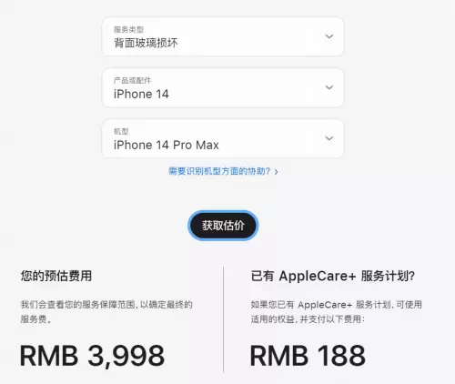 根据Apple官网估价显示,如果iPhone 14 Pro Max机型的背面玻璃损坏,维修费用为3998元,如果购买AppleCare+服务,那么相同的部件维修只需188元。可见购买iPhone 14系列,加购一份AppleCare+服务确实很有必要。