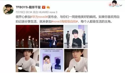 无论是功能还是效果,nova3的AI拍照能力已经达到了华为产品线中的高端水准,就连加盟华为的nova代言人易烊千玺也在微博频频自拍,对nova3爱不释手。