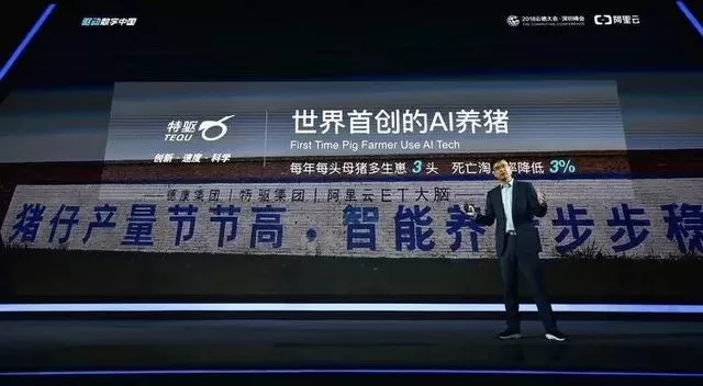 2018年2月,阿里云与特驱集团签订战略合作协议,通过人工智能收集数据,对猪的生产、管理、防疫等方面进行监控、预警及给出操作建议。