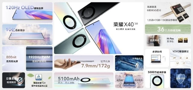 9月15日,荣耀举行秋季新品发布会,荣耀亿万口碑的X系列手机,带来了全新的九年里程碑之作——荣耀X40,售价1499元起。作为档位首款采用OLED硬核曲屏并兼顾轻薄长续航的跃级体验标杆,荣耀X40在设计、屏幕、性能、音质、互联等方面全方位跃级。从硬核功能到人文科技,荣耀X40让用户“不做选择题”。