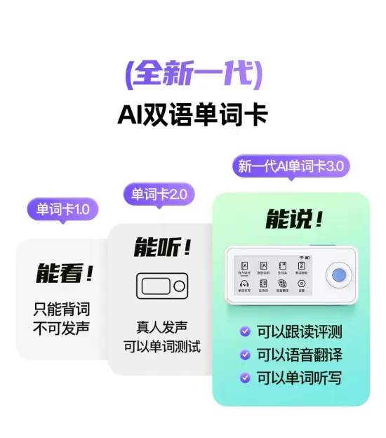 如果说,最初的单词卡1.0时代是能“看”到单词进行背诵,那么单词卡2.0时代则是通过单词卡发声进行能“听”、能背。而如布科技AI双语单词卡K11的发布,则将单词卡迈进了崭新的3.0时代,通过AI黑科技实现全方面的学习、背诵和测练一体。