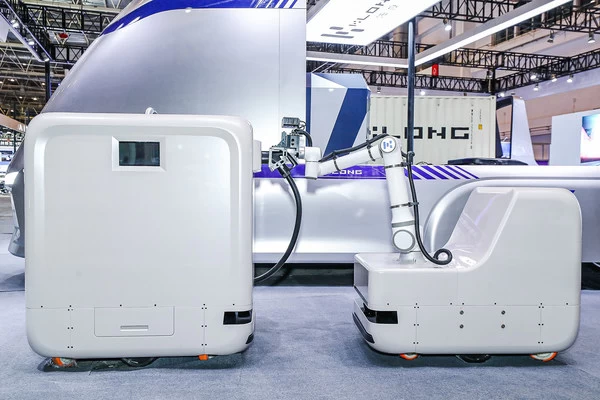 智能充电车是为满足车辆快充需求开发的全自动移动充电系统,最大总质量1.5吨,常用车速1-1.5m/s,搭载双目视觉识别系统,配备6轴协作机器人,全自动完成用户车辆的充电动作,打造云、车、场、充、服为一体的无感充电系统,构建智能充电新生态。智能充电车和充电机器人均基于KL0010EV平台打造,该平台载重1T,可扩展无人配送等应用场景。
