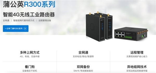在开放户外环境区域下部署网线入网可能会受到各种意外性因素限制,为此蒲公英R300S工业4G路由器可提供多种上网方式支持,4G全网通、有线宽带、无线中继,并且具备有线/4G智能切换备份功能,供应服务商可根据实际情况选择配置方案。