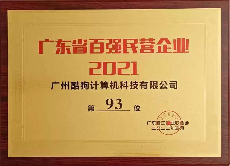【图:酷狗入选“2021广东省百强民营企业”】