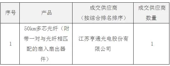 中国电信研究院50km多芯光纤集采:亨通独家中标