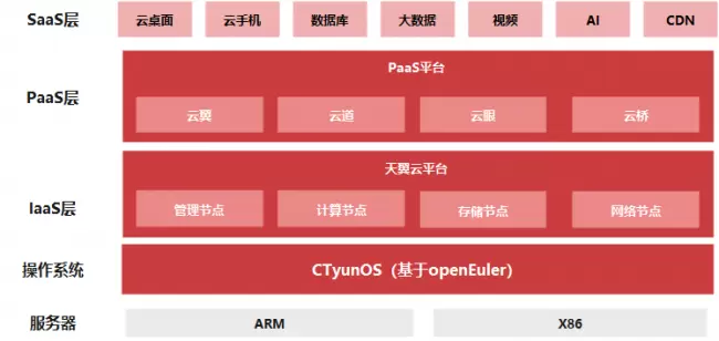 openEuler是数字基础设施开源操作系统,100%支持主流计算架构,通过一套操作系统覆盖全场景应用。。CTyunOS操作系统基于openEuler 20.03 LTS版本自主研发,包含天翼云完全自研的虚拟化增强组件和云平台组件,完善的编译工具链及开发环境等特性,具有高性能、高可靠、强安全和易扩展的特点,充分结合了开源社区的能力,是针对云计算场景进行了深度优化的定制增强版本。当前,CTyunOS已经适配天翼云IaaS层云平台计算节点、存储节点、网络节点、管理节点,PaaS层的云翼、云道、云桥平台,上层的ECX、数据库等业务,平台性能提升10%以上。