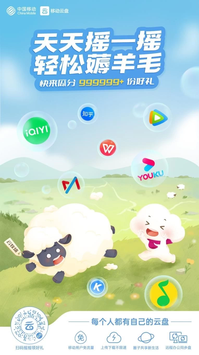 对于职场精英来说,充足的存储空间和稳定的高速传输至关重要。而中国移动云盘提供40GB基础空间(个人云20G+家庭云20G),非移动用户为20G基础空间(个人云10G+家庭云10G),即日起至2022年12月31日,新人上传2张照片即可领取1T个人云空间年卡,参与“摇一摇”活动,还有机会获得视频卡、外卖会员,音乐会员等好礼。