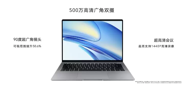 荣耀MagicBook V 14 2022配备500万高清广角双摄,90°大广角让摄像头的可视范围相比传统摄像头提升50.6%,1440P超高清分辨率画面,配合4个高信噪比麦克风,以及4个高低分频扬声器的超高配置,为用户打造出体验非凡的音视频会议系统。