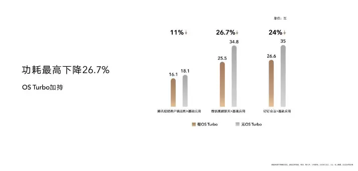 在荣耀OS Turbo系统级性能和功耗优化引擎的加持下,实现了性能更优,功耗更低的表现:荣耀MagicBook V 14 2022 在钉钉会议、腾讯视频客户端追剧以及微信视频聊天等日常场景下,功耗最高下降达26.7%;而整机的续航时长对比竞品最高可以提升73.4%,配合60Wh大容量电池,续航能力得到有效提升。