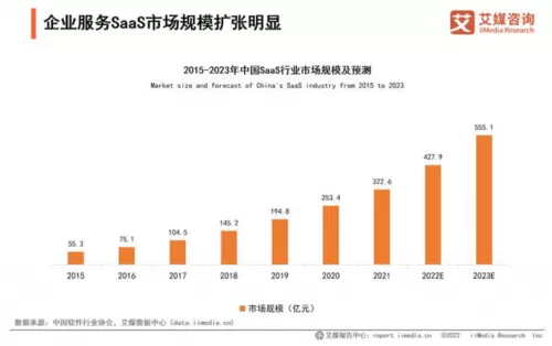 依据iiMedia Research数据显示,2022中国新经济独角兽企业TOP100排行前三的行业为企业服务、汽车交通和先进制造,得益于数字经济迅猛发展,各类崭新的商业模式被挖掘,企业服务往精细化和个性化方向发展,催生了更多的企业服务独角兽企业;而随着企业的商业模式不断变化,SaaS企业的业务体系呈现多元化发展态势,推动着企业服务SaaS行业的市场规模不断扩大。