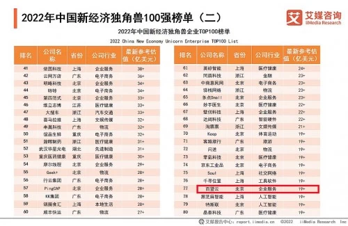近日,全球知名的新经济产业第三方数据挖掘和分析机构iiMedia Research(艾媒咨询)发布了《2022年中国新经济独角兽百强榜暨标杆企业研究报告》。