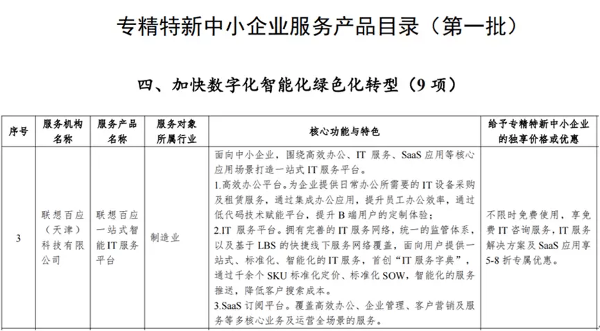 支持“专精特新”企业发展 联想百应平台荣列首批服务产品目录
