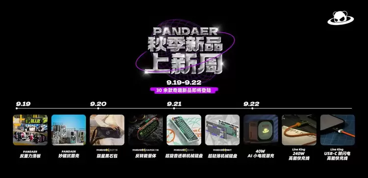 除了PANDAER反重力滑板,魅族PANDAER秋季新品上新周期间,PANDAER潮电系列产品:PANDAER40WAI小电视潮充、LineKing高能快充线,PANDAERxIQUNIX超旋音透明机械键盘、PANDAERxMIKIT超轻薄机械键盘,PANDAERxGROTTO陨星黑石包,PANDAERxSHARGE反转能量体等奇趣新品也将陆续登场。