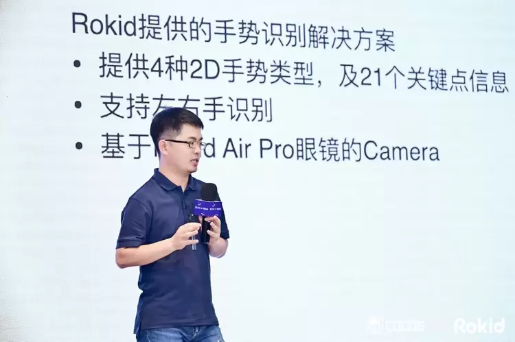 Rokid 应用平台产品负责人朱雷在演讲中分享了Rokid在数字人、3D内容创作、空间协同、视听交互、手势交互等方面为开发者带来的硬核技术支持。