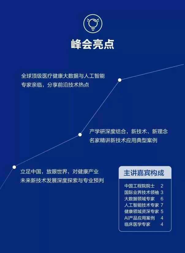 本次峰会以“智慧科技赋能健康产业跃迁”为主题,以学术引领,数据驱动,智慧赋能为核心功能。大会将汇聚全球医疗、健康、大数据和人工智能领域的顶级专家、学者和产业界优秀人才,围绕当前医疗健康领域热点话题、核心技术以及大家共同关注的科学问题进行深入交流和探讨,并针对该领域相关技术前沿研究、产业化创新应用、产业思维等设立主题演讲,打造国际交流平台,推动健康产业跃迁。
