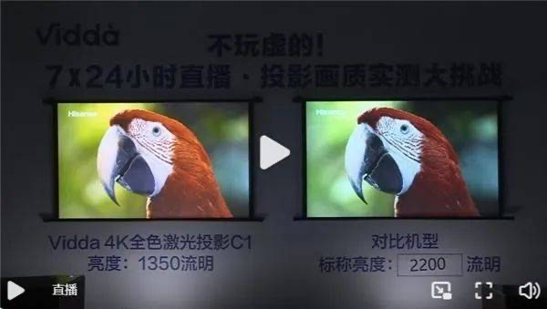 随后,Vidda也用了一场产品测试直播证明了自己的产品实力,从实际的测试效果来看,1350流明的Vidda C1实际的亮度完全碾压某机型2200流明的的效果。同时,Vidda不仅自己对比测试,还将投影仪寄给了多家媒体以及评测机构,并且测试结果与之前一致,瞬间在整个行业掀起波澜。