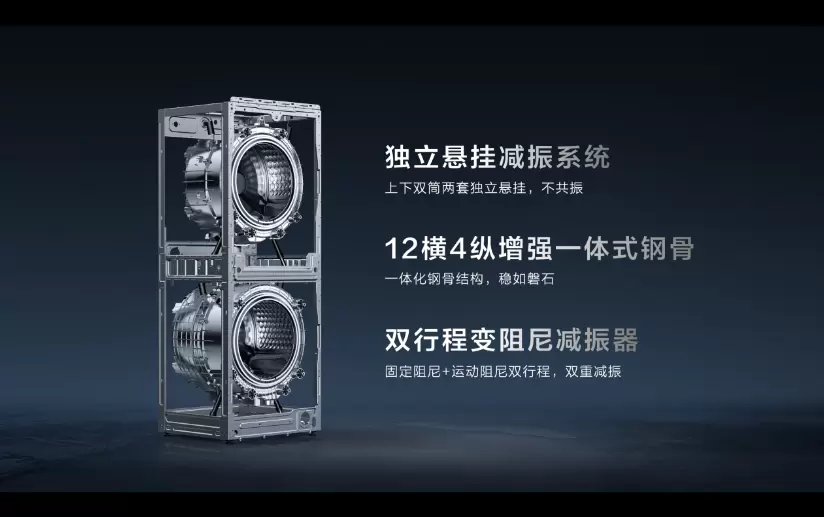 这样的挑战结果充分展现了TCL双子舱的减振降噪能力。为实现减震降噪效果,TCL双子舱Q10在配置设计上是有一套完整、明确的降噪减震思路的。首先,在噪声源头上,采用了尼得科直驱变频电机,减去皮带传导带来的噪声,且更平稳的发电机运转,也有效减少了振动。然后,采用了12 横 4 纵的整机一体式钢骨结构,一体成型,底盘稳固;还为双子舱Q10专门定做了变阻尼减振器,它通过在脱水启动阶段降低外桶的振幅,避免外桶撞击箱体产生噪音和震动。