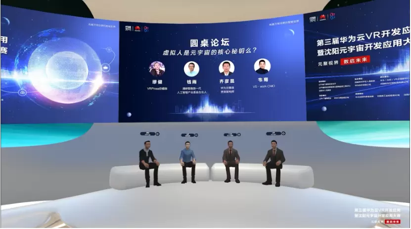 在圆桌论坛环节,VRPinea 总编辑缪健、清研载物新一代人工智能产业基金合伙人钱雨、华为云媒体资深架构师齐彦昆、VS·work CMO韦骞以《虚拟人是元宇宙的核心密钥么?》为主题,就元宇宙数字经济时代的技术和虚拟人相关生态的发展趋势进行了深入探讨。
