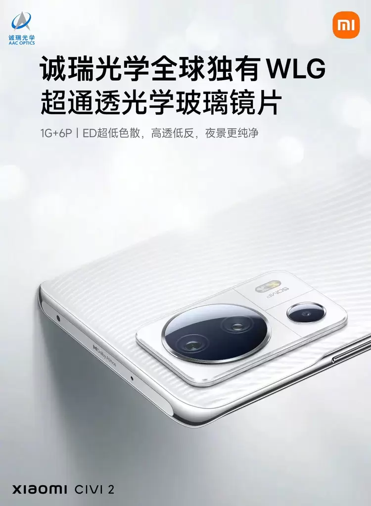 “超通透”影像体验:小米Civi 2搭载诚瑞光学全球首款1G6P WLG玻塑混合镜头