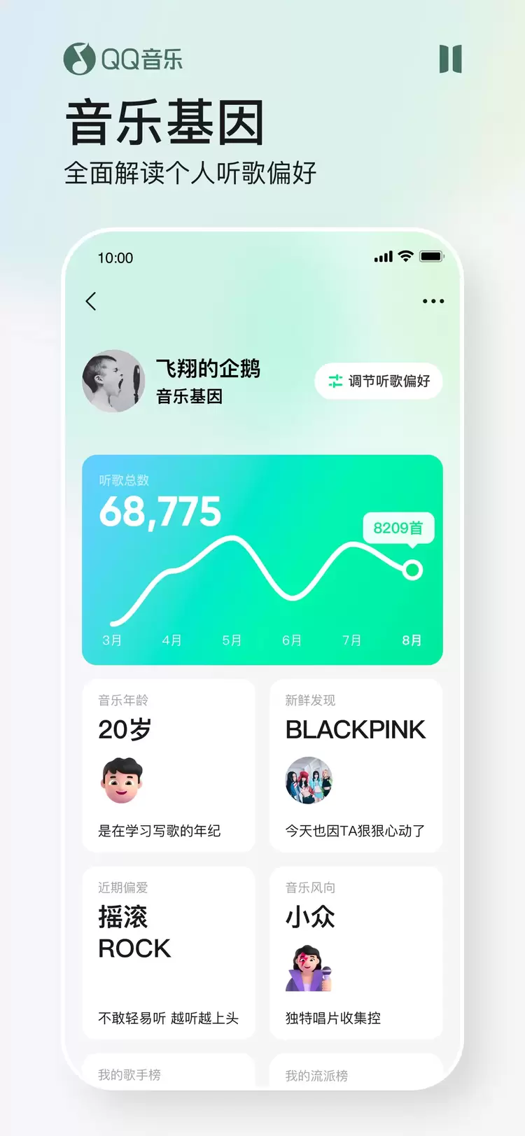 9月30日,QQ音乐全新11.10版本更新全面上线,首次推出解读你听歌偏好的【音乐基因】,支持个性化分享的【歌单卡】,首创【个性APP图标】支持用户自定义更换手机桌面APP Logo等一系列新功能,带给用户更加简洁、有趣、个性化的用户体验。