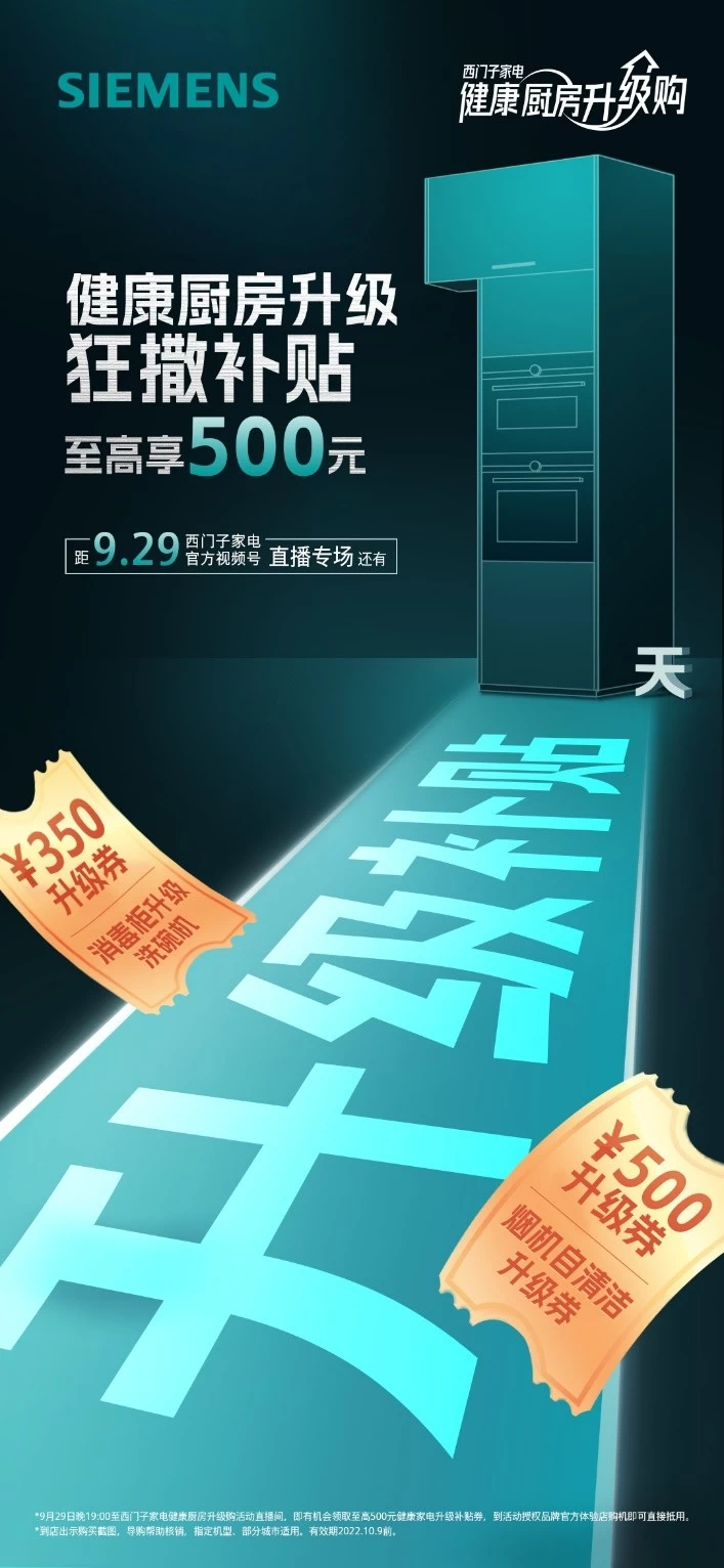 为了加码此次升级购活动,更大幅度、更大范围地惠及更多消费者,“线上+线下”将同步七重福利,让消费者嗨购不停。在线下,到授权门店购买西门子品牌家电,可享受烟管预埋、上门设计、洗碗机橱柜免费改造、蒸烤橱柜免费改造等免费服务,更有亮碟套装、烘焙工具、厨房好物等精美礼品相赠。在线上,西门子家电将于9月29日晚七点开启直播狂欢活动,海量红包雨、劲爆免单秒杀、厨电升级补贴等福利,实实在在为消费者带来更实惠的购物惊喜。