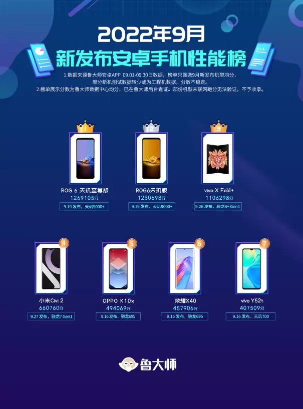 10月9日,鲁大师正式公布9月新机榜跑分排名。这其中,发布不久的腾讯ROG游戏手机6天玑系列表现惊艳,ROG6天玑至尊版、天玑版分别拿下9月新机榜性能跑分Top1及Top2排名。此前腾讯ROG游戏手机6天玑系列已获得安兔兔9月跑分排名第一,此次再度霸榜,足以见得ROG对于天玑9000+的独到优化以及散热策略的升级,并再一次印证了ROG在产品革新与技术跃迁上的强大实力。