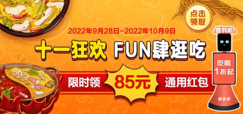 此次中秋假期,猎豹移动旗下券多多售券机器人及线上小程序还推出了70元通用红包,以及与售券机器人合照送100元红包等活动,市民领取红包后购买餐饮优惠券可直接立减。
