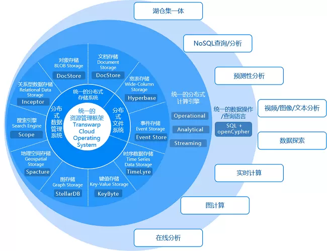 在多模能力上,星环信息科技的TDH 9.0在原多模型能力基础上新增文档数据库,实现9种存储引擎支持10种数据模型,包括实时流计算引擎Slipstream、关系型分析引擎 Inceptor、宽表数据库Hyperbase、图数据库StellarDB、搜索引擎Scope、时空数据库Spacture、时序数据库TimeLyre、键值数据库KeyByte、事件存储库Event Store、数据科学平台Sophon Discover,以及一系列保障平台安全、稳定运行等企业级管理需求的子产品,满足用户多种数据处理需求。