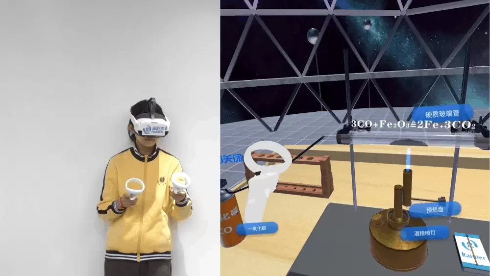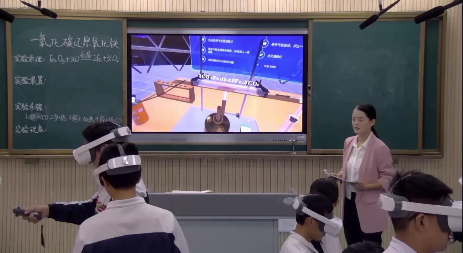 例如在中学化学教学中,工业炼铁实验原理是非常重要的一个内容,但是因为CO具有毒性且在反应过程中容易发生爆炸等危险情况,因此在大多数的初中课堂上都无法进行学生分组实验或者是教师演示实验,因此学生对于实验的印象并不深刻。在虚拟现实功能教室中,学生可以利用PICO VR一体机独立的探究CO和Fe2O3的反应,并在实验的过程中不断的尝试错误,在安全的环境下亲身体会错误带来的后果,这对学生的冲击是巨大的,真正培养学生科学探究的核心素养。