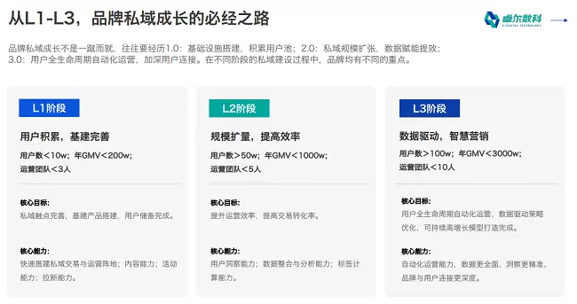 但是,品牌的私域成长并不是一蹴而就的,往往要经历L1-L3三个阶段。