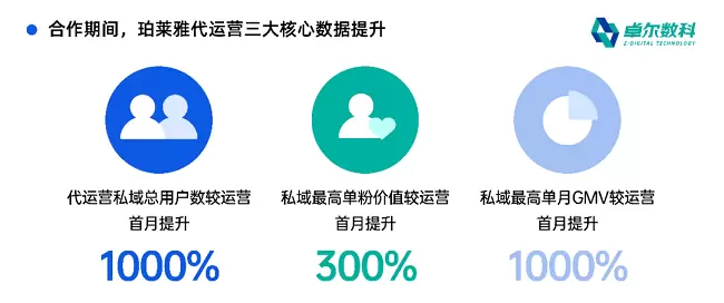 通过卓尔数科提供的一站式私域增长解决方案,珀莱雅实现私域运营转化效果提升,核心数据大幅增长:新粉转化率提高80%;老粉复购率提高100%,人均月产出GMV提高500%。